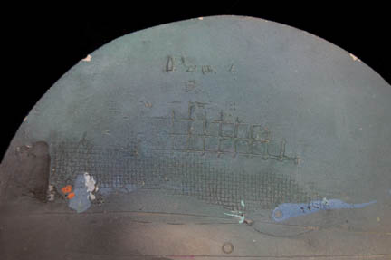 Description: This great wall decoration hung in Tom Paris' (Robert Duncan McNeill) quarters during the Star Trek:Voyager series. Made of wrought iron, the decoration has been embossed with grids, circles and dents for detail before being spray-painted in subtle shades of blue, yellow, and mauve. The back has a wire already attached for hanging and a Paramount Picture Corp inventory number. There is also a piece of tape that reads "Paris Qtrs" left over from production. What makes this piece more interesting is that it was reused over and over again in different Star Trek series and locations. Measures approx. 13 ½ diameter inches.