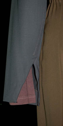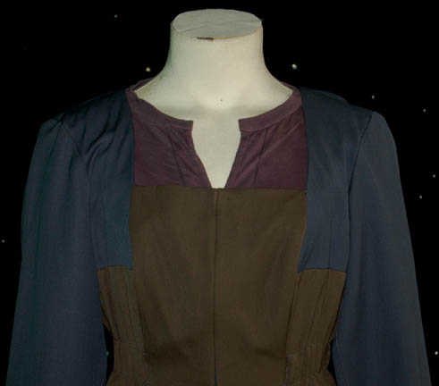 Description: “Kelsey” (Marie Marshall) was the leader of a mercenary group who boarded the U.S.S. Enterprise without authorization to steal the toxic warp byproduct trilithium resin at the Arkaria Base during the Star Trek: The Next Generation episode “Starship Mine”. This costume was worn by Kelsey and includes a long sleeved brownish-gray jumpsuit with blue sleeves, elasticized waist and zip up the front. Worn underneath is a long sleeved gray V-neck shirt. Costume comes complete with costume tag.