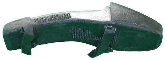 Description: Cast in foam rubber and latex, painted metallic silver, this phaser is fused immediately into its black holster so as not to be drawn. Made for background actors to be ‘armed' but not to engage the enemy in battle. This item features Velcro straps for attachment to uniforms. This particular item features rectangular buttons painted gold and red metallic colors. Measures approx. 8 X 2 X 1 1/2 inches.
