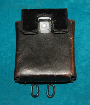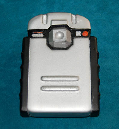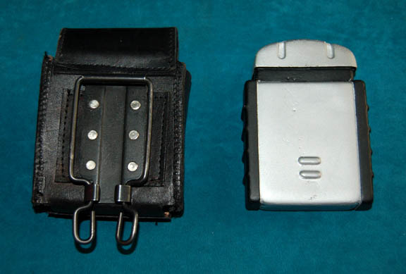 Description: A solid molded rubber hand scanner featured in various episodes of Star Trek: Enterprise with black and metallic silver paint with multi-colored accents and a black leather pouch with a Velcro flap and attached ‘Bianchi International Universal Military Holster' clasps on back for attachment. This excellent prop was intended for background player use and measures approx. 5.5 X 2 X 3.5 inches.
