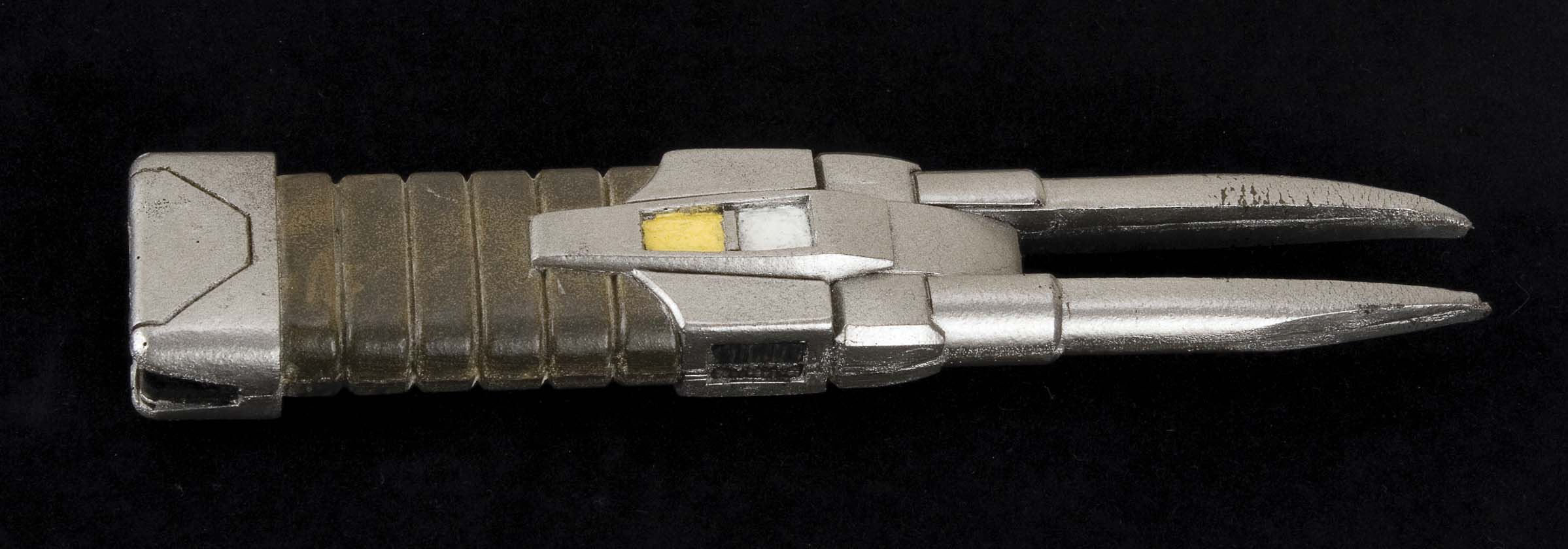 Description: (Paramount-TV, 1993-99) Double-prong hand-held tool constructed of hard rubber painted silver and black, used by starship engineers as a diagnostic/repair tool on Star Trek: Deep Space Nine.