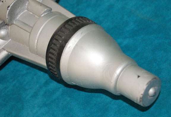 Description: The Enterprise era as depicted in the Star Trek: Enterprise series spanned the years 2151 to 2155. This Starfleet rifle from that time period was used during the filming of Enterprise. The rifle is made of cast black rubber with sections painted silver to resemble metal. A black adjustable strap is attached to the handle. Measures approx: 26 x 8 x 2 ½ inches.
