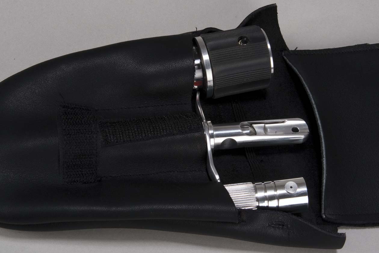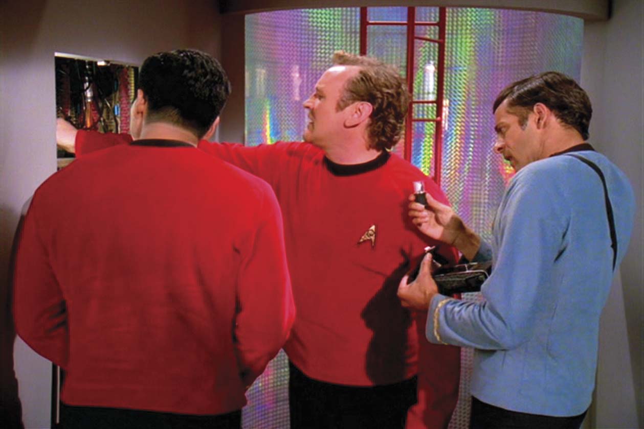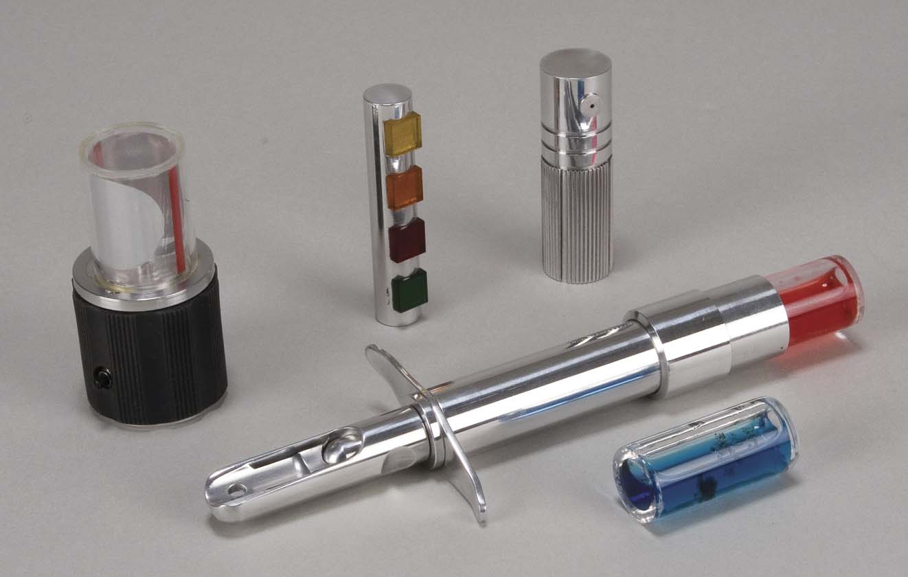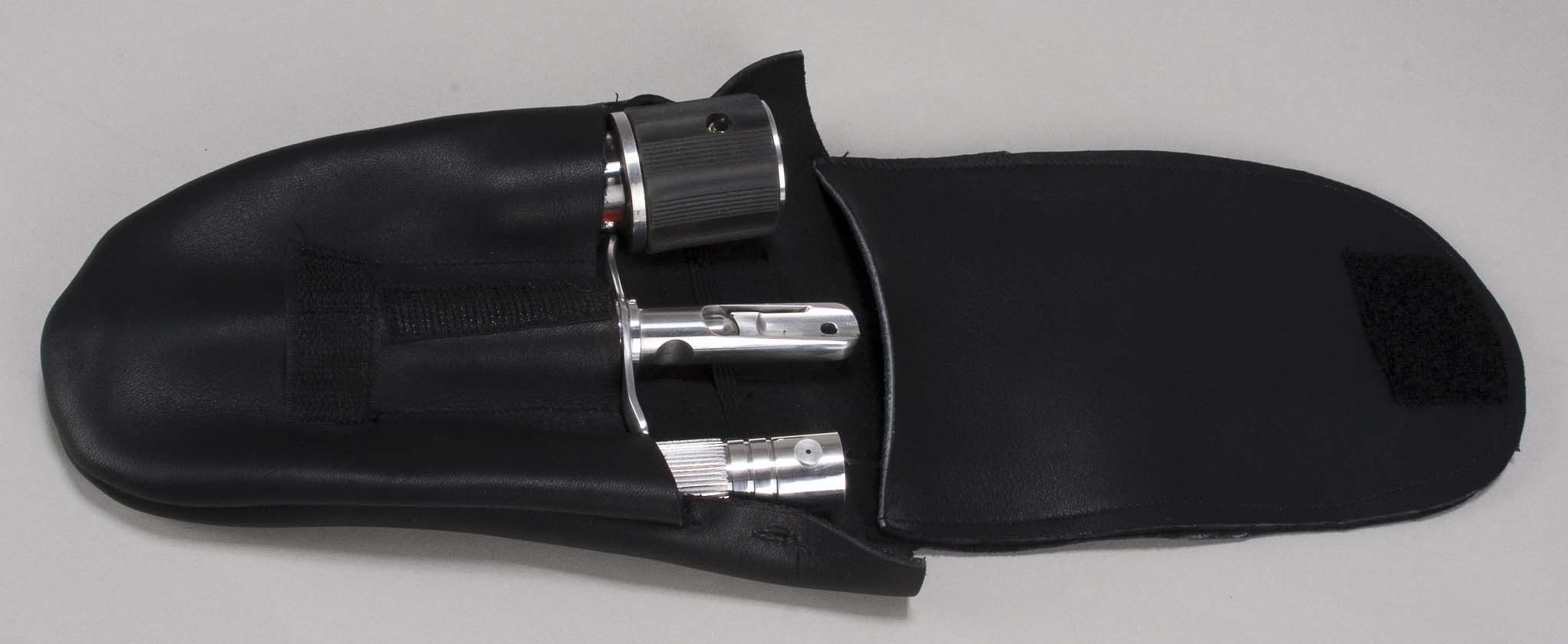 Description: (Paramount-TV, 1993-99) Retro-style medical tools, similar to those used by Dr. McCoy from the Original Series, including a hypo and working scanner. Five pieces total, housed in a black leather pouch. Used by Dr. Bashir in the DS9 episode, "Trials and Tribblations."