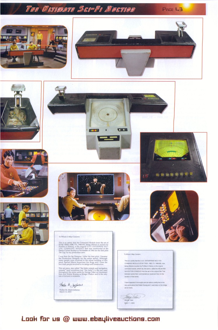 Description: (NBC-TV, 1966-69) The original Command Module from the bridge of the legendary starship, USS Enterprise. Constructed at the Desilu Culver Studios in November of 1964 for the first pilot The Cage, this importanct set piece remmained the focal point of the bridge throughout the entire series. ...