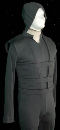 Description: A costume featured in the Star Trek: Voyager episode “Persistence of Vision” for wear by Patrick Kerr portraying the ‘Bothan Man', an alien capable of revealing to the crew of “Voyager” their deepest fears and exploiting their weaknesses. The costume is a full length jumpsuit with harnesses and a hood. The item comes with a costumer’s tag.