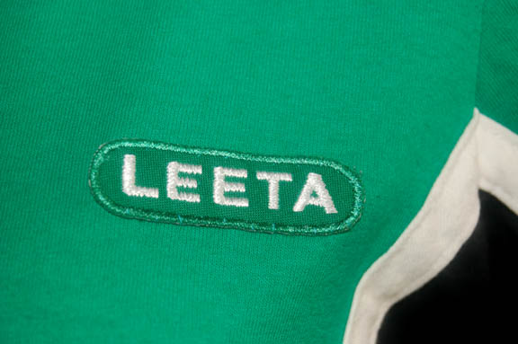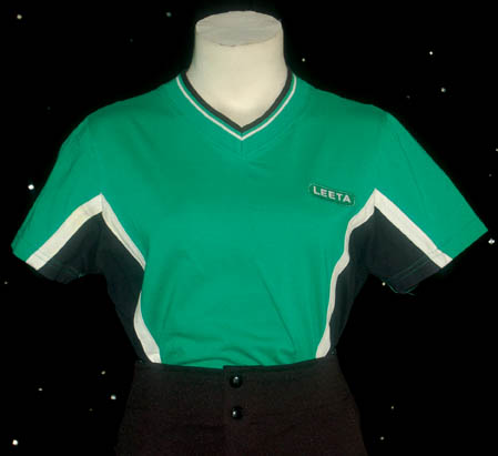 Description: Upon the arrival of the “USS T'Kumbra” to “Deep Space Nine”, a ship whose crew is completely made up of Vulcans, “Captain Sisko” (Avery Brooks) is reminded of his longstanding rivalry with the Vulcan captain. Sisko’s crew is challenged by the Vulcan captain to a game of baseball in an effort to test their abilities. Even though she wasn’t part of the crew, “Leeta” (Chase Masterson) the Dabo girl is asked to join the team. Her practice costume is made up of these components, a green and black shirt with white stripes and an embroidered name tag patch sewn onto the left breast, black sport trousers and a green baseball cap. All of the items feature Deep Space Nine tags sewn in or are inscribed ‘Chase’ or ‘Chase Masterson’.