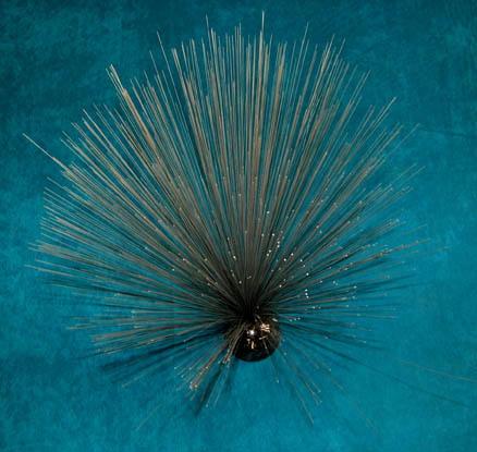 Description: This interesting set dressing item was featured in the Star Trek: The Next Generation episode “The Best of Both Worlds, Part 1” and was seen onboard the U.S.S. Enterprise in the Ten Forward room. It has a dark marble dome base and metal spindles protruding out of it. They fan open for a tree like effect. Measures approx. 25 ½ x 4 ½ inches diameter.