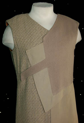 Description: A costume featured in the Star Trek: Voyager episode “Day of Honor” for wear by Alan Altshuld in his portrayal of ‘Lumas', an alien whose species was assimilated into the Borg Collective. The costume consists of a full length sleeveless jumpsuit and a matching asymmetrical waistcoat. The costumer’s tags indicate wear in the episode and sewn in Voyager tags indicate further wear by various actors.