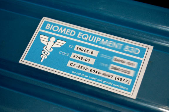 Description: A pair of blue plastic medical containers used during the filming of the Star Trek: Enterprise series. Each snaps shut and one has a Starfleet ‘Biomed Equipment 83D' medical label attached on top. They were most likely featured in Dr. Phlox’s (John Billingsley) sickbay on board the U.S.S. Enterprise NX-01. Each measures approx. 13 ¼ x 5 ¼ x 2 ½ inches.
