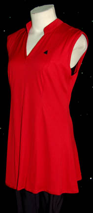 Description: Velocity is a competitive sport played one on one that combines handball with a ‘phaser range'. Featured in the Star Trek: Voyager episode “Hope and Fear”, “Captain Janeway” (Kate Mulgrew) and “Seven of Nine” (Jeri Ryan) are seen playing a ten round game that Janeway wins 6-4. This is Janeway’s Velocity outfit from that game and includes a black sleeveless jumpsuit that zips up the back and a red sleeveless V-neck top that also zips up the back. On the left side of the chest is a small Velcro patch for a Combadge (Sold separately) to attach. The sewn in tags read “Voyager – Kate Mulgrew”. Costume comes complete with costume tag.