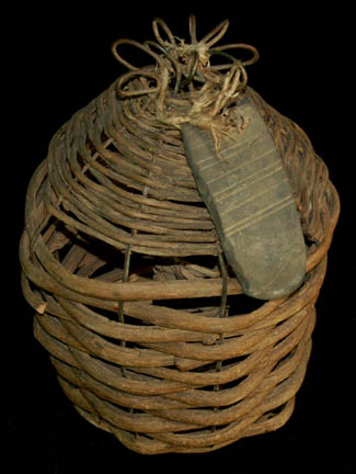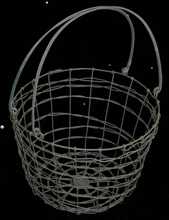 Description: This diverse set of three containers was used as set dressing during the filming of Star Trek episodic television. One is woven wood strips around a wire frame with a piece of rubber covering the opening in the top. The second container is a sphere made of wire with sea foam green painted trim and the third is a woven metal basket with adjustable handles. The largest basket with handles measures approx. 8 ΒΌ x 12 inches diameter.