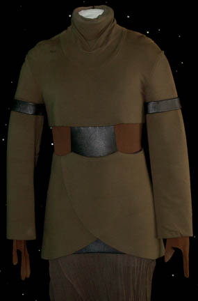 Description: A costume featured in the Star Trek: Deep Space Nine episode “Armageddon Game” for wear by a T'Lani’ soldier. The costume is a corduroy-like jumpsuit with a broken neoprene body and sleeve piece with a light shirt. The costumer’s tag reads ‘DS9 #433’