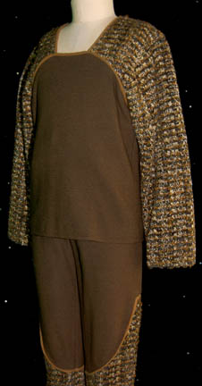 Description: A pair of pajama costumes featured in various episodes of Star Trek: The Next Generation for wear by Brian Bonsall during his portrayal of “Alexander Rozshenko”, the son of “Worf” (Michael Dorn). The costumes are olive and tweed, a top and pants, both outfits are identical and one set comes features sewn in tags reading ‘Brian Bonsall' while the second sets sewn in tags read ‘Chris Ogden’. The costumer’s tag reads ‘”Alexander” Brian Bonsall, 2 p.j.s Dbls’.