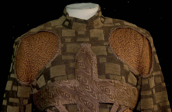 Description: “Dr. Jo'Bril” (James Horan) was a Takaran scientist invited onboard the U.S.S Enterprise to view a test of its metaphasic shielding in the Star Trek: The Next Generation episode “Suspicions”. Jo’Bril wasn’t all he appeared to be and was killed in self-defense by Dr. Beverly Crusher (Gates McFadden). The first shot blasted a hole through his abdomen but it failed to kill him, the second shot was set to vaporize and he was annihilated. The tunic is made of heavy weight fabric that features rectangular shapes and a zip up the back. It has snaps on the front and back for a cut out costume piece to attach. Costume comes complete with costume tag.