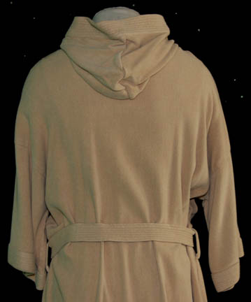 Description: A costume featured in the Star Trek: Enterprise episode “Two Days and Two Nights” for wear by Connor Trinneer during his portrayal of “Commander Tucker”. Having spent only a few hours on the intergalactic pleasure planet, ‘Risa', the crew of “Enterprise NX-01” separates to their own vacations. Commander Tucker and “Malcom Reed” (Dominic Keating) find themselves stunned by beautiful alien shape-shifters who steal their clothes. When they rendezvous with the crew to return to the ship the pair are wearing robes from their hotel. This one happens to be the one worn by Connor Trinneer, a full length off white colored robe with a waist tie and a costumer’s tag reading ‘Trip, Connor Trinneer, Robe’.