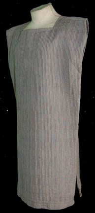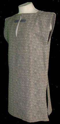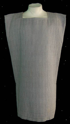 Description: A pair of tunics created for use by actors portraying Klingons. The items are waist length with zips up the back, one has a ringed pattern and the other features frequent pleats to give it a ribbed appearance.