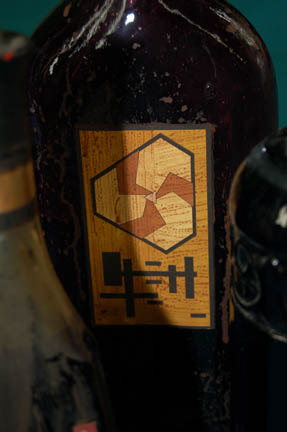 Description: A lot of seven alien bottles featured in various episodes of Star Trek. The bottles are of various shapes and sizes. Two are vaguely triangular with an application and a cork, one has opaque fluid and the other has dark, another bottle is made from blue glass, sealed with a fluid within, one bottle is a tall flat bottle of nearly clear glass, another has an alien iconographic symbol and script, there is a second blue bottle and a green bottle with molded fruit accents. The largest bottle measures approx. 13 X 5 X 2 inches and the smallest measures approx. 11.25 X 3 in diameter.
