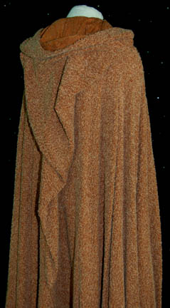Description: Costume is a cloak featured in the Star Trek: Enterprise episode "Civilization" where the “Enterprise NX-01” crew finds a fully-inhabited Earth-like planet that is suffering from a mysterious disease. Item is floor-length, sturdy rust colored cloak with a hood and clasp at the neck.