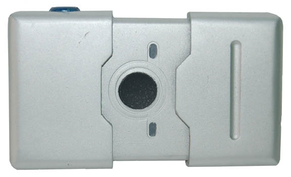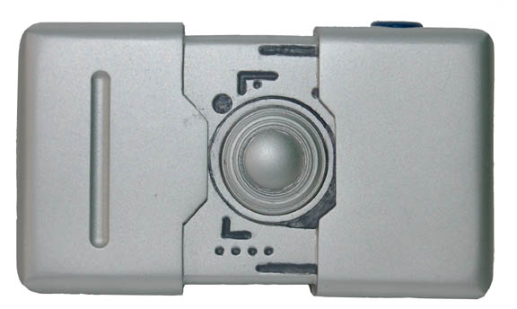 Description: A prop camera made from molded foam rubber appearing in various episodes of Star Trek: Enterprise painted metallic silver with black painted accents and blue painted faux button. An item like this was featured in the episode “Rouge Planet” by “Commander Tucker” (Connor Trinneer) while on the bridge of the “Enterprise NX-01”. The item measures approx. 4.25 X .75 X 2.5 inches.