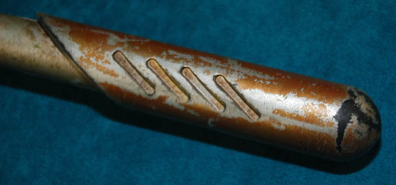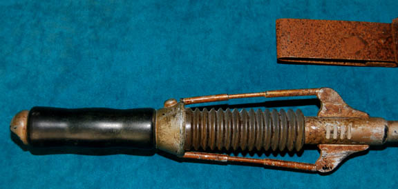 Description: A prop used by multiple aliens in multiple episodes, but featured specifically by Klingons in the Star Trek: Enterprise episode "Judgment", and by Tandorans in "Detained". Item is cast rubber with a black vinyl handle, with "metal" accents, and holster that clips to the belt. Dimensions are approx. 24 X 3 X 2 inches.