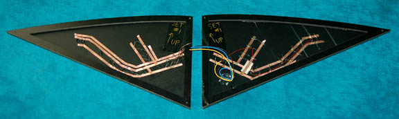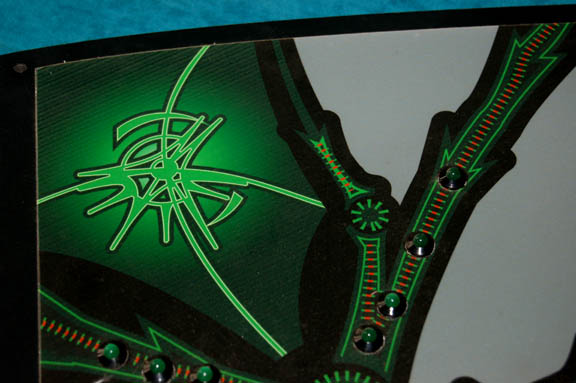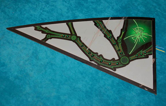 Description: A lot of two console components featured in various episodes of Star Trek: Enterprise on Xindi ships. The items are roughly triangular, compressed foam-core with vinyl graphical applications on the front depicting Xindi character letters, with untested banks of lights along the surface of the applications. The backside features wiring and circuitry for the lights. Dimensions of both are approx. 23 X 11 X 1 inches.