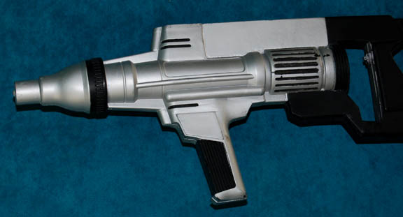 Description: A prop hand weapon featured in various episodes of Star Trek: Enterprise. The item is cast rubber painted metallic silver and black with an attached stock. Item measures approx. 25 X 8 X 3 inches.