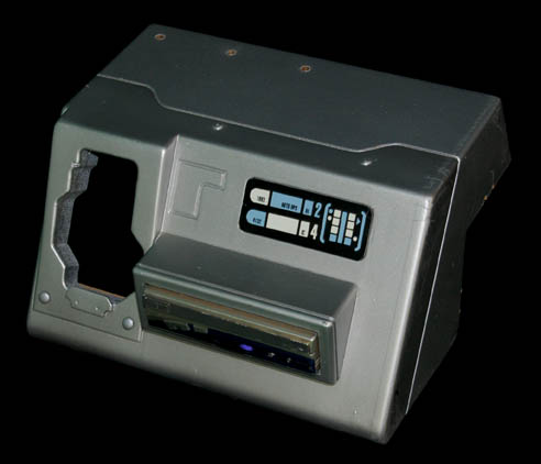 Description: The ARGO all-terrain buggy was driven by Captain Picard (Patrick Stewart) on the planet Kolarus III in Star Trek X: Nemesis. With Worf (Michael Dorn) and Data (Brent Spiner) as his not so willing passengers, Picard raced across the planet's bumpy terrain back to the ARGO shuttle under hot pursuit of the aggressive Kolarins. This ARGO buggy dashboard component housed the ARGO remote (Not included) used by “Data” (Brent Spiner) and is made of particle board painted silver with an LCARS panel on the front. A built in untested AV component is modified in the front. Measures approx. 15 ¼ x 12 x 8 ½ inches.