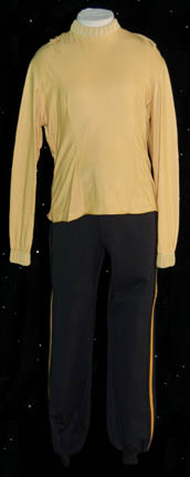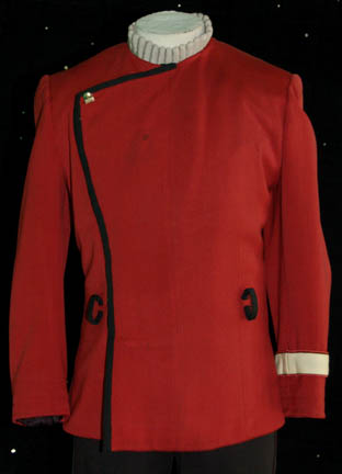 Description: From the beginning of Star Trek: The Next Generation, actor Tim Russ has been associated to the franchise. Having auditioned for a role as “Geordi La Forge” which subsequently was given to Levar Burton, Russ eventually became cast as the Vulcan security officer “Tuvok” on Star Trek: Voyager after having played various guest roles in The Next Generation and Deep Space Nine. As Tuvok was trapped in the Delta Quadrant it was eventually known that he had been an ensign on board the famous “USS Excelsior” during the events of Star Trek VI: The Undiscovered Country. Shortly thereafter, at least in the Star Trek chronology, Russ performed as a member of the “USS Enterprise-B” crew during the opening of Star Trek VII: Generations. In both instances Tim Russ wore a costume with components to create this lot, a feature films-style Starfleet uniform. The lot consists of a pair of two pairs of black trousers, one with gold division stripes down the outside seam of the legs and the other with grey division stripes; the grey trousers featuring sewn in Star Trek VII tags inscribed ‘Tim Russ'. The lot comes with two shirts, one a gold colored long sleeved shirt with a ribbed collar and cuffs and a sewn in Star Trek VII tag reading ‘Tim Russ’, and a gray colored sleeveless shirt with no identifying tag. The lot includes a gray shoulder division strip with gold colored trim and an affixed metal ‘ensign’ rank badge with an affixed ‘security placement’ on the other end, and a red rank placement with affixed metal ‘ensign’ rank badge for attachment to a uniform sleeve, both of which were located with a tag inscribed ‘Tim Russ’. Finally, the costume comes complete with a maroon colored Starfleet class-A uniform jacket with white colored inner breast lining, silver colored metal chain details in between snaps, and an affixed command white division strip on the left sleeve which has no identifying tags.