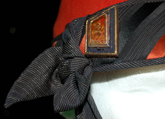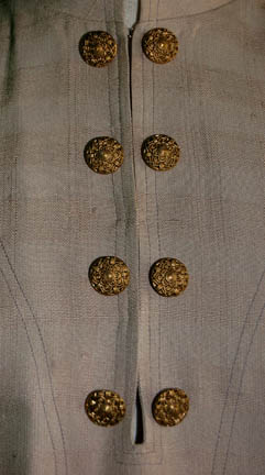 Description: The Vulcans are a humanoid race from the plant Vulcan who are known for their great sense of logic and stoic nature. They were one of the instrumental species responsible for establishing the United Federation of Planets and were featured throughout the Star Trek anthology. This costume was worn by a Vulcan electrician working on the Klingon ‘Bird of Prey'. It was renamed the HMS Bounty by the U.S.S. Enterprise crew who seized the vessel in StarTrek IV: The Voyage Home. The long sleeved khaki top has a V-neck and four pairs of gold colored metal buttons down the front. The trousers are also khaki color with diamond shaped cuffs and a draw string waist. The accompanying Vulcan hat is rust color with a black and rust band and black pin-striped chin strap. It has a resin Vulcan decoration on the right side and black lacing in the back. Costume comes complete with costume tag.