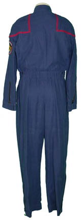 Description: Featured exclusively in the final story arc of the fourth season of Star Trek: Enterprise this security uniform appeared in episodes like “Demons”. A Starfleet uniform jumpsuit including a rare ‘Sol Sector Security Division' left shoulder patch with engineering red division trim around the shoulders. Star Trek: Enterprise costumes feature multiple zippered pockets, Velcro size adjustments and zippers at the wrists and ankles, come with detachable shoulder pads, and a black, longs sleeved, button up undershirt. The sewn in Enterprise tag indicates wear by ‘Melissa Kolaks’.