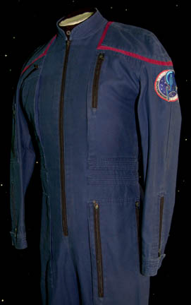 Description: A costume featured in various episodes of Star Trek: Enterprise for wear by Connor Trinneer in the role of “Commander Charles ‘Trip' Tucker III”, Chief Engineer of the “Enterprise NX-01”. The uniform is the standard 22nd century Starfleet uniform with engineering red division stripes around the shoulders and is composed of a full-length blue jumpsuit with seven functional, zippered pockets, zipper/Velcrocuff adjustment for the wrists and ankles, Enterprise patch on the shoulder, a black sleeveless undershirt. A sewn in tag reads ‘Enterprise, Connor Trinneer’.