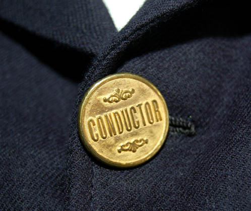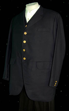 Description: A costume featured in the Star Trek: The Next Generation episode “Emergence” wherein the “Enterprise-D” crew finds that, amazingly, the ship is reproducing. This costume is for wear by David Huddleston in the role of the train conductor and is a long-sleeved, white dress shirt, mother of pearl colored buttons, a navy blue vest, an identically colored jacket, both of which have functional pockets and buttons that say “CONDUCTOR” on them, and black trousers with a velvety texture. The costumer's tag reads ‘275 TNG Emergence, Conductor, David Huddleston’.