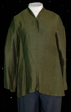 Description: “The Doctor” (Robert Picardo) was the Emergency Medical Hologram onboard the U.S.S. Voyager during the Star Trek: Voyager series. The Doctor's emergency-only role was altered to make ‘him’ a full time medic after the ship’s medical personnel were killed. This is his civilian costume that includes a green and black patterned shirt with a zip up the front and gray trousers. The sewn in tags read, “Robert Picardo”. Costume comes complete with costume tag.