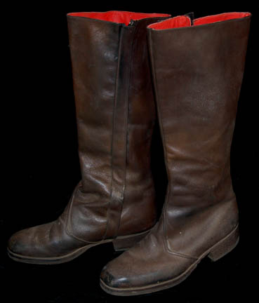 Description: A costume featured in Star Trek: Deep Space Nine for wear by stunt performers portraying “Worf”. The costume is brown trousers with a multicolored striped short sleeved shirt a patterned coat with enormous pockets and a matching hat, and a pair of brown leather boots that feature Velcro seals on the inside and a wide black leather belt. The costumer's tag reads ‘#503 DS9 “Trials and Tribble-ations”, Stunt Worf, Brennan Dyson, Match to Michael Dorn’.