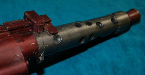 Description: A prop weapon featured in the Star Trek: Enterprise finale “These Are the Voyages…” wherein the “Enterprise NX-01” assists “Commander Shran” (Jeffrey Combs) in rescuing his daughter from kidnappers and is pursued and boarded by the aliens. This is the episode where “Commander Tucker” (Connor Trinneer) sacrifices himself to save “Captain Archer” (Scott Bakula). The item is a metallic maroon colored, compressed rubber cast energy rifle with simulated wood grain, a painted metal colored muzzle accent, attached stock, and slight wear due to time and storage. The item measures approx. 33.5 X 3.5 X 8 inches.