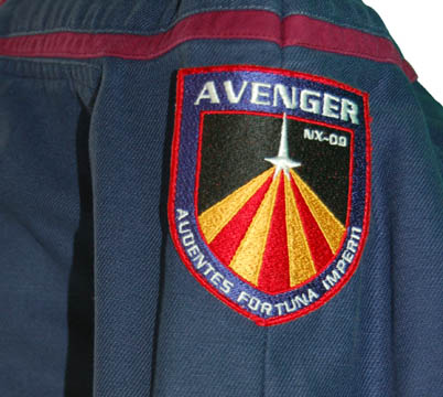 Description: The “evil Mirror Universe” of Star Trek is a place where our heroes are duplicated though their personalities are vastly different due to their changed circumstances. The Federation has been replaced by a Terran Empire that rules by force and conquest instead of governing by diplomacy and democracy. Changes in the chain of command frequently come through assassination, mutiny, and seduction. Costumes like this one were featured in the two episode story arc “In a Mirror, Darkly, Parts I and II” of Star Trek: Enterprise. This item consists of a Terran Empire Starfleet uniform jumpsuit including the notorious ‘Avenger NX-09' left shoulder patch with red and yellow beams of light emitting from a white Starfleet emblem, a patch emblem of the Terran Empire on the opposing right shoulder, red engineering division trim around the shoulders, and black epaulettes for rank. The “Avenger” was another ‘NX-Class’ ship like “Enterprise” commanded by a human captain (as is commonplace in the mirror universe) though crewed by aliens considered to be second-class citizens. In the episodes the aliens attempted to improve their situation by taking over the “Enterprise” after “Avenger” was destroyed in combat. “Star Trek: Enterprise” costumes feature multiple zippered pockets, Velcro size adjustments at the wrist and ankles, and come complete with a black undershirt (this one a sleeveless tee) with detachable shoulder pads, even in the mirror universe. The sewn in tag reads “Enterprise” and indicates use by various actors in the series.
