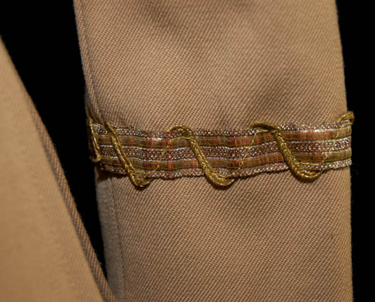 Description: A costume featured in Star Trek I: The Motion Picture. The costume is a tan Class-A uniform top with matching trousers. The top features affixed gold colored trim around the sleeve cuffs indicating the wearer to be the rank of ‘lieutenant', an unattached plastic bio-monitor, and threads remaining from a removed patch on the left breast. The costumer’s tag reads ‘Star Trek, Iva Lane, (Lieut. Tech.), Change #1, sc.64, Int. bridge, sc. 97’.