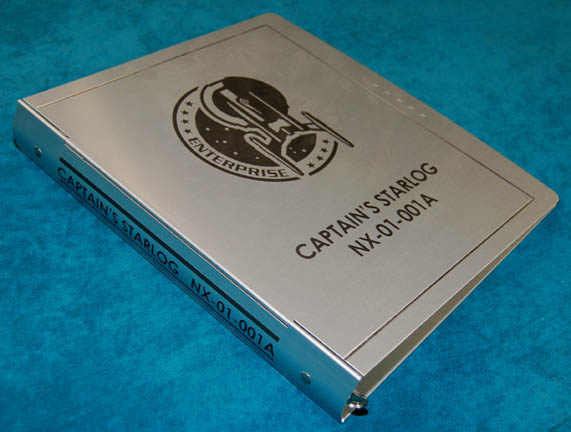 Description: This impressive binder was made for use on the Star Trek: Enterprise series. Presumably made for “Captain Archer” (Scott Bakula), the standard Unites States three ringed binder features the ‘Enterprise' logo on the front. Also on the front and along the spine it reads “Captain’s Starlog NX-01-001A”. Measures approx. 11¾ x 10 ½ x 2 inches.