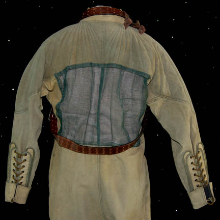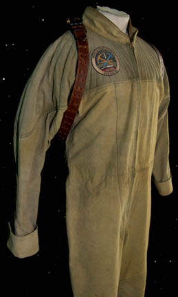 Description: An Orpheus Mining Colony suit made for use by “Trip Tucker” (Connor Trinneer) in the Star Trek: Enterprise episode “Demons” in which Trip and “T'Pol” (Jolene Blalock) went undercover to the Luna Mining Colony however their identities were discovered and they were taken hostage by Terra Prime. The mining jumpsuit is a dirty tan color with laces at the cuffs and ankles. The shoulders are quilted and there is an Orpheus Mining Colony patch on the right breast. On the back is a large green mesh section. The corresponding thermal undershirt is long sleeved and beige. The sewn in costume tags read “Enterprise – Connor Trinneer”. Two brown belts accompany the costume and were located with the suit however the name on one of the belts is not Trinneer. Costume comes complete with costume tag.