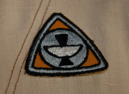 Description: A costume featured in Star Trek I: The Motion Picture for wear by characters on board the ‘Epsilon IX Station'. The costume is a cream colored shirt with an open neck and an affixed yellow backed ‘Epsilon IX’ assignment patch on the left breast.