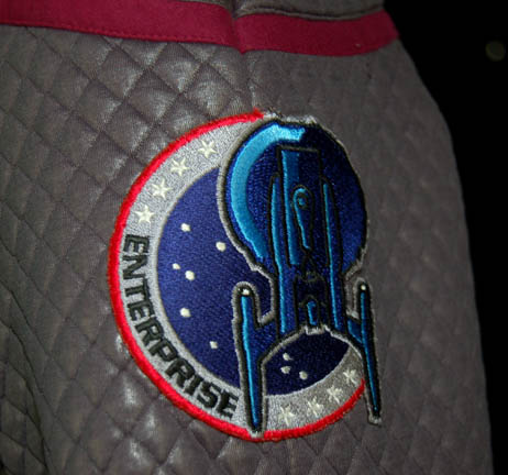 Description: “Lieutenant Malcolm Reed” (Dominic Keating) was a Human who served onboard the U.S.S. Enterprise NX-01 as the armory officer during the Star Trek: Enterprise series. This is an Away Team jacket made for wear by Dominic Keating and presumably from the first season since it is in the old style. The gray diamond shape quilted jacket has Operations red trim around the shoulders, an Enterprise NX-01 patch on the left sleeve, a zip up the front and three zippered pockets. There are also zips and Velcro fastenings on each cuff. Costume comes complete with costume tag.