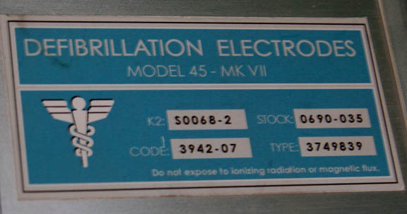 Description: A lot of props and their corresponding case featured in the Star Trek: Enterprise episode “Observer Effect” for use on “Hoshi Sato” (Linda Park) while “Captain Archer” (Scott Bakula) attempted to resuscitate her. The items are metal disks with a dome and a centered light which is activated when the bottom of the device is screwed in completely. Three of the lights are untested, but the fourth works and is powered by a 3volt ‘Renata' CR1025 Swiss made battery positioned positive side up inside the item. The light up one retains topstick applied to the bottom. All four of the items fit into a silver colored metal case, held in place by gray foam, the case opens on sturdy hinges and seals by way of a latch. The exterior of the case features a Starfleet inventory application with a blue background labeled ‘Defibrillation Electrodes, Model 45 – MK VII’ with a white medical cadesus. The case measures 7 X 5.25 X 1.75 inches, the electrodes measure 1 inch diameter. The item was located with an adhered label inscribed ‘leads placed on Hoshi “Observer Effect’.