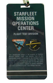 Description: A prop security badge featured in the Star Trek: Enterprise episode “First Flight” for wear by Starfleet characters in the ‘NX Project' locations at Starfleet Command. The item is a blue plastic badge on a black lanyard with a faux magnetic strip on the reverse and depicts the logo of Starfleet Command on the front with the logos of Starfleet Mission Operations and the NX Project on the reverse. ‘Starfleet Mission Operations Center’ is inscribed on both sides along with various numeric values and both realistic and quirky information and instructions on the reverse such as ‘This badge entitles the bearer to pizza and a beer at Club 602 during regular business hours.’ Item measures approx. 3.5 X 1.75 inches.