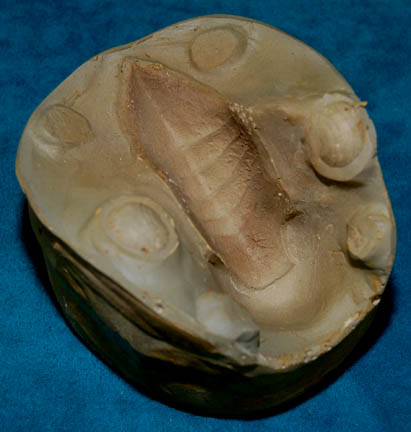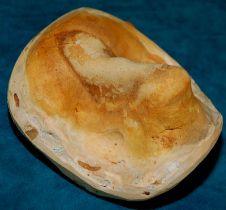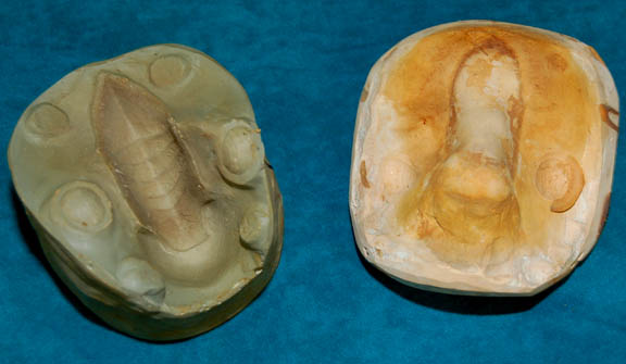 Description: “Gul Dukat” (Marc Alaimo) was a Cardassian who in 2375 took on the appearance of a dead Bajoran “Anjohl Tennan” by surgically altering his appearance and featured as such in the Star Trek: Deep Space Nine episode “Strange Bedfellows”. This mold was used to create the prosthetic piece to give Dukat a Bajoran appearance. The mold consists of two pieces; one half is a cast of a nose, presumably Marc Alaimo's and the second piece is a relief of the Bajoran nose markings. Measures approx. 4 x 3 ½ x 3 inches.
