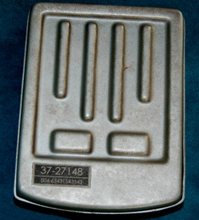 Description: A prop PADD (Personal Access Display Device) featured in various episodes of Star Trek: Enterprise. The item is molded plastic with a backlit graphical application affixed to its display ‘screen' depicting circuitry with numeric values. The item is activated by depressing an internal button with a small pin-like instrument (not included) and powered by two AAA sized 1.5volt batteries (also not included). The reverse housing adheres to the front by way of internal Velcro. The item measures approx. 4.25 X 3.5 X .75 inches.