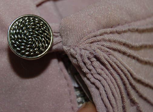 Description: A costume shirt featured in Star Trek III: The Search for Spock, recognizable as the style appearing on William Shatner in his portrayal of “Admiral Kirk”. The shirt is a pink colored, long sleeve, diagonal zip front shirt with a silver colored button at the top, with a fanned out pattern on the chest, and with fortified cuffs. The shirt is faded from time and storage conditions, darker at the waistline, but retains its overall appeal. The sewn in Western Costume Co. tag reads ‘William Shatner' and the costumer’s tag reads ‘William Shatner, Not Used on Star Trek IV’.
