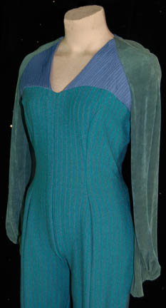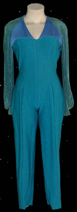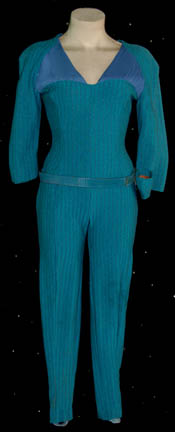 Description: A costume featured in the two part Star Trek: The Next Generation episode “The Gambit: Part I and II”, wherein “Captain Picard” (Patrick Stewart) is presumed dead and the “Enterprise-D” investigates and pursues those they think responsible when “Captain Picard” is actually in disguise on the very ship the “Enterprise-D” is chasing. This costume is for wear by Richard Lynch in the role of the captain of the ship that “Captain Picard” has assumed the identity of “Galen” on, that has kidnapped “Commander Riker” (Jonathan Frakes), and is searching for the parts of an artifact called “The Stone of Gol”, “Arctus Baran”; it includes a full-length, long-sleeved brown jumpsuit with stirrups for the feet, a zip down the back, half of a sleeveless jumpsuit sewn onto a panel of rough, brown leather that is, in turn, glued, Velcro'd, and sewn onto a leather frame featuring various geometric shapes on it, resembles some kind of prosthesis or exoskeleton that follows down the leg and is reinforced with more striped, padded leather on the knees and around the ankles. Also included is a mid-sleeved, mid-riff jacket of the same striped, padded leather, a zip down the front and that, along with all other exterior items, has been distressed to appear “rugged” and for effect. A sewn in tag reads ‘Star Trek: TNG, Richard Lynch’ and the costumer’s tag reads ‘TNG #256 Gambit Part I, Baran, Richard Lynch’.