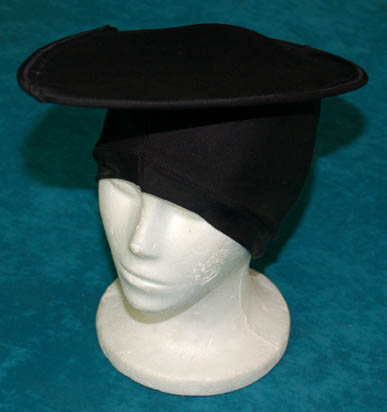 Description: A costume featured in the Star Trek: The Next Generation episode “The Child”, wherein “Counselor Deanna Troi” (Marina Sirtis)is mysteriously impregnated by an unknown alien entity that is born and matures at a fantastic rate. This costume is for wear by veteran actress Whoopi Goldberg in the role of the El-Aiurian bartender whose race was scattered to the four corners of the galaxy by the Borg, “Guinan”, and is a long-sleeved, dark green shirt featuring thin horizontal stripes, two sewn in collars, extra-long rear shirt tail, slight fading on the shoulders due to time and storage, and corresponding trousers, zip cuff adjustment around the ankles, and a black, roughly oval-shaped hat made of a spandex-type material. The costumer's tag reads ‘TNG 127 The Child (Season 2), Guinan, Whoopi Goldberg’.