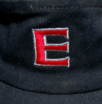 Description: A black hat created as a prototype for the “Enterprise NX-01” hats featured in the first season of Star Trek: Enterprise and in the episode “The Forge”. The ball cap is black with a solid bill and an elastic rim, the front features a white bordered, red embroidered ‘E'. One size appears to fit all. A ‘Made in the U.S.A.’ tag is present within.