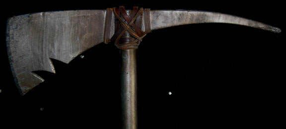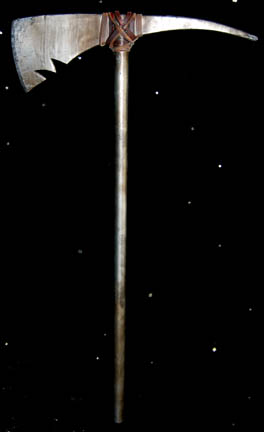 Description: A costume featured in the Star Trek: Enterprise episode “Judgment” for wear by Dominic Keating in his portrayal of “Lieutenant Reed” while he broke into the infamous Klingon prison mine of Rura Penthe to rescue “Captain Archer” (Scott Bakula) from life imprisonment. The costume is a large set of layered fabrics with faux fur, synthetic wool, and real wool or varying colors. Made to appear rugged, the costume is torn and ragged in places with multiple holes and ‘stains'. The sewn in Enterprise tag reads ‘Dominic Keating’ and ‘Marty Murray 045’. The costume also comes with a prop ‘rock pick’ featured in the episode, a plastic pipe filled for added sturdiness with a rubber ‘blade’ molded around an interior metal frame work featuring leather wrapped lacing around the ‘blade’, all painted metallic silver and measuring approx. 30 X 16 inches.